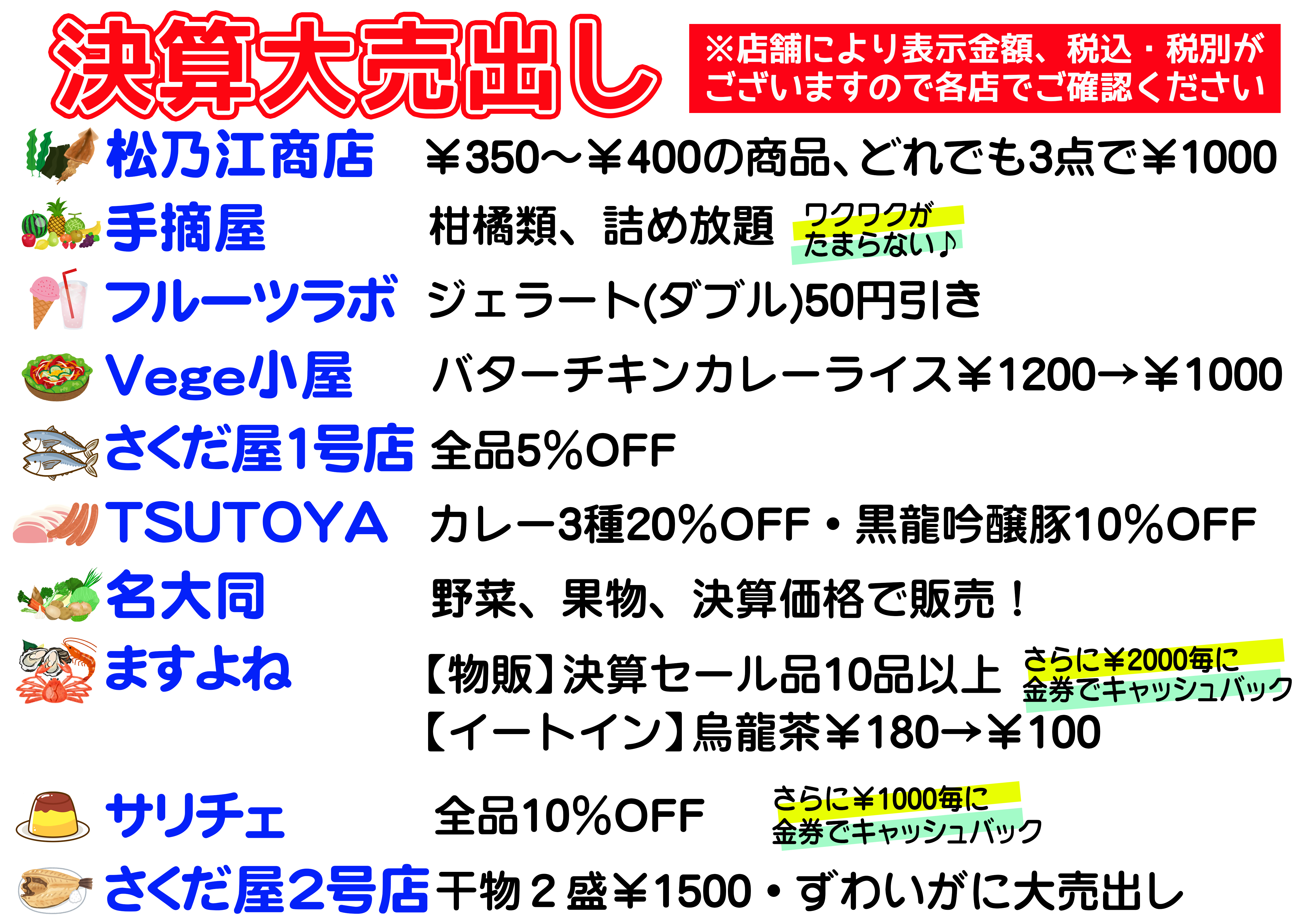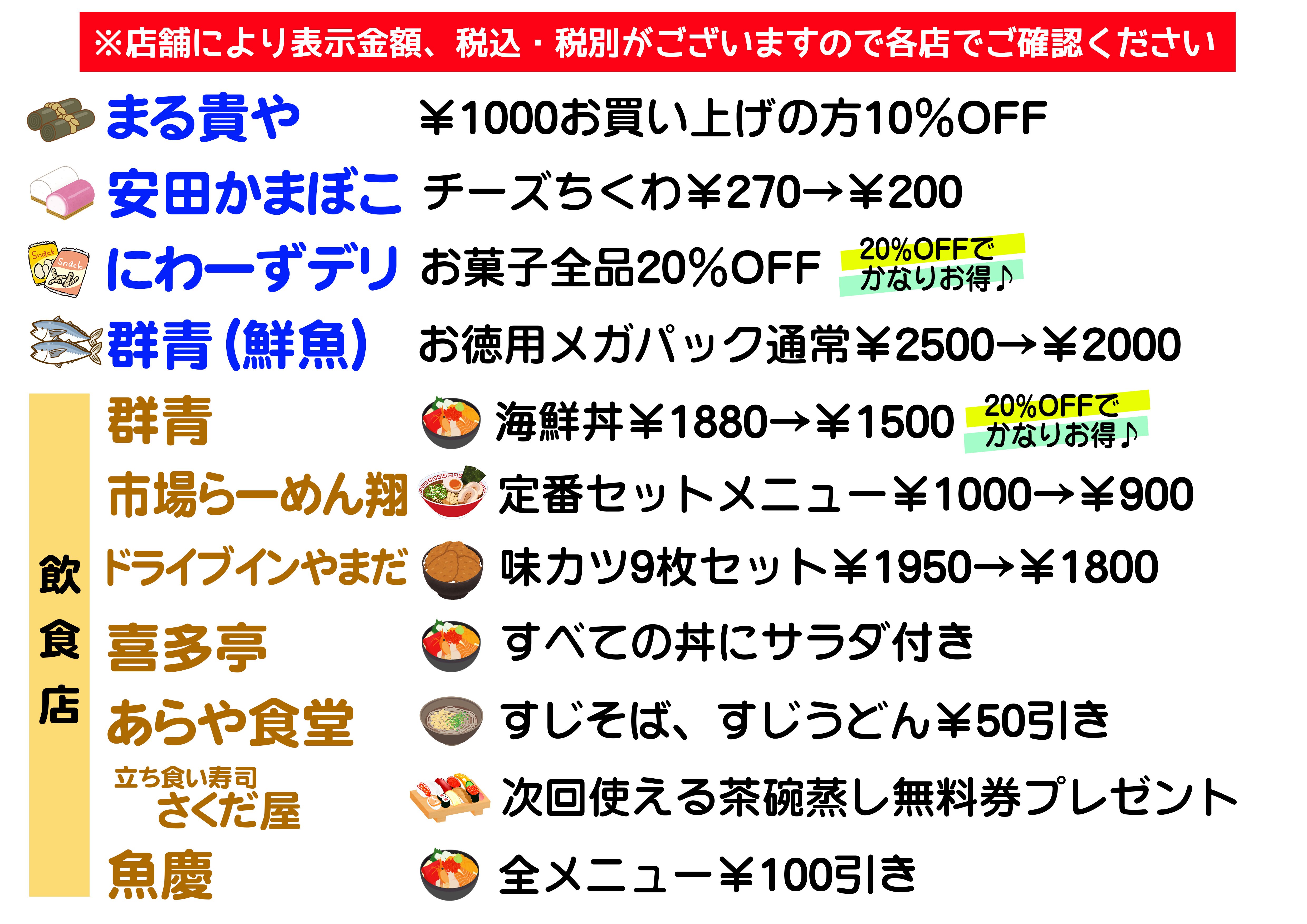 全店が特売品やサービス満点でお待ちしております。