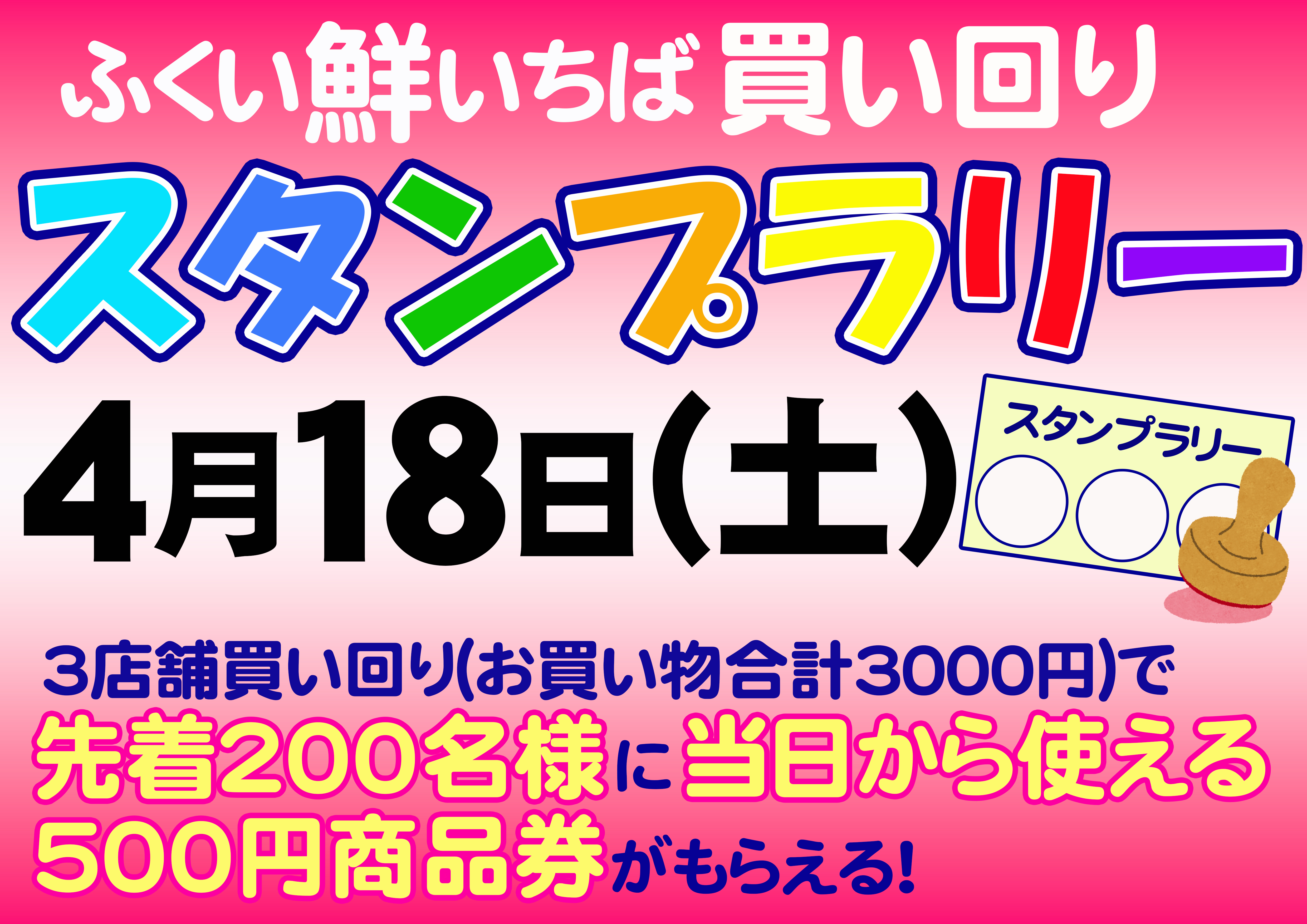ふくい鮮いちばでは、4月18日(土)に『ふくい鮮いちば買い回りスタンプラリー』 を開催します。